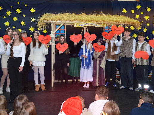 Dnia 19.12.2025 r. uczniowie klasy 7d wraz z chórkiem szkolnym zaprezentowali jasełka pt. „Światło nadziei”, inspirowane motywami z „Dziewczynki z zapałkami” H.Ch. Andersena.
