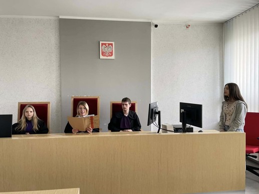 Uczniowie klasy 8b mieli okazję czynnie uczestniczyć w symulacji rozprawy sądowej. W trakcie zajęć wcielali się w role ławników, prokuratora, obrońcy i innych uczestników postępowania. Celem symulacji było rozwijanie świadomości prawnej i obywatelskiej oraz kształtowanie postawy odpowiedzialności za swoje czyny.