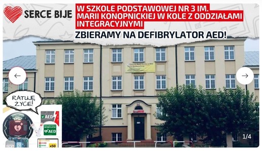 Każda złotówka się liczy! Zbieramy na zakup defibrylatora AED! Dołącz do naszej zrzutki i pomóż wyposażyć naszą szkołę w sprzęt ratujący życie.